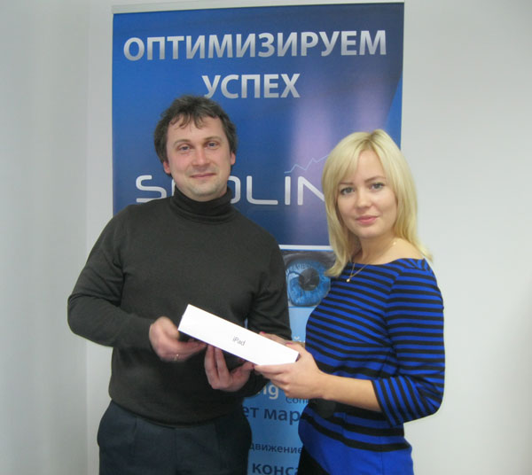 5 октября в московском офисе Seoline GmbH менеджеры mastertarget.ru вручили подарок победителю веб-мастеру Александру!